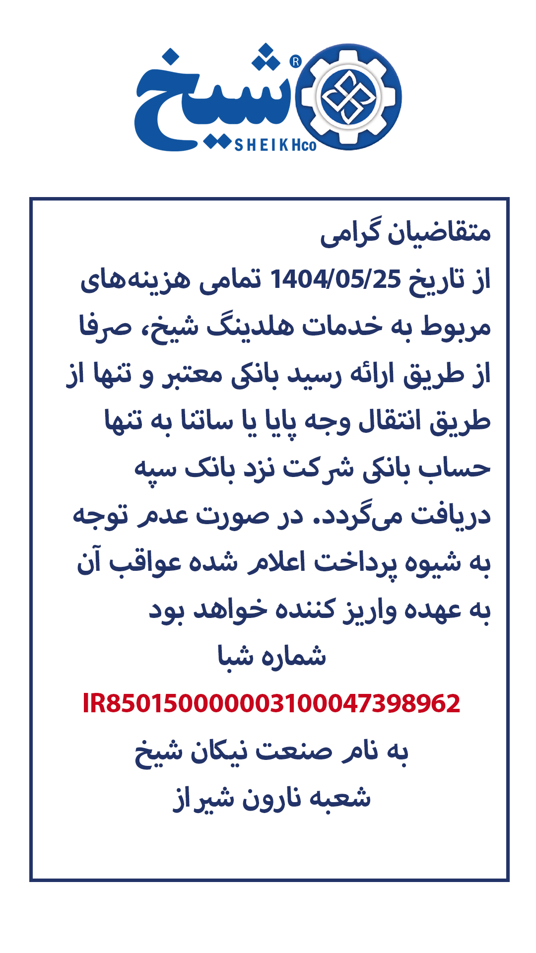 اطلاعیه های گروه تجاری شیخ